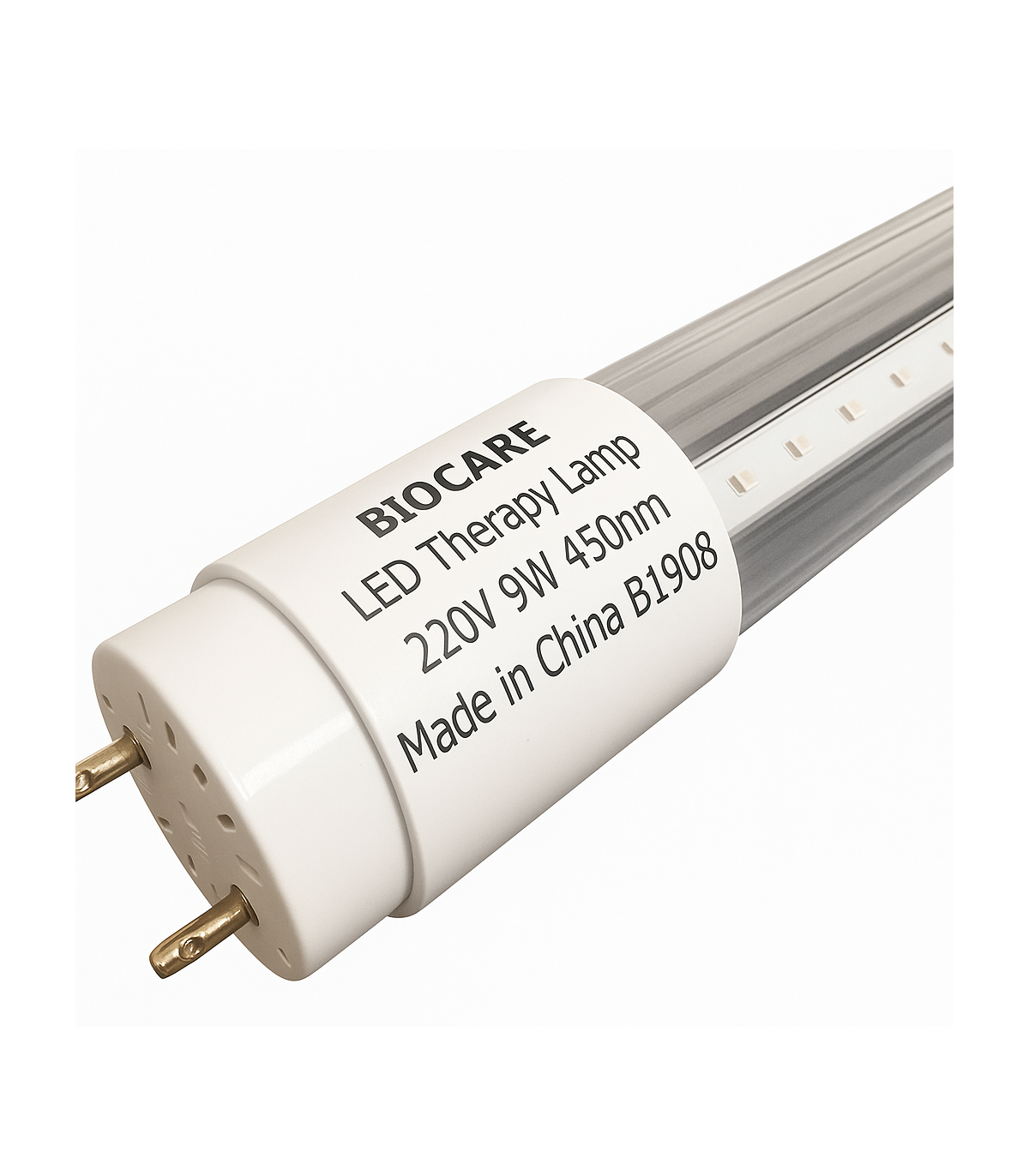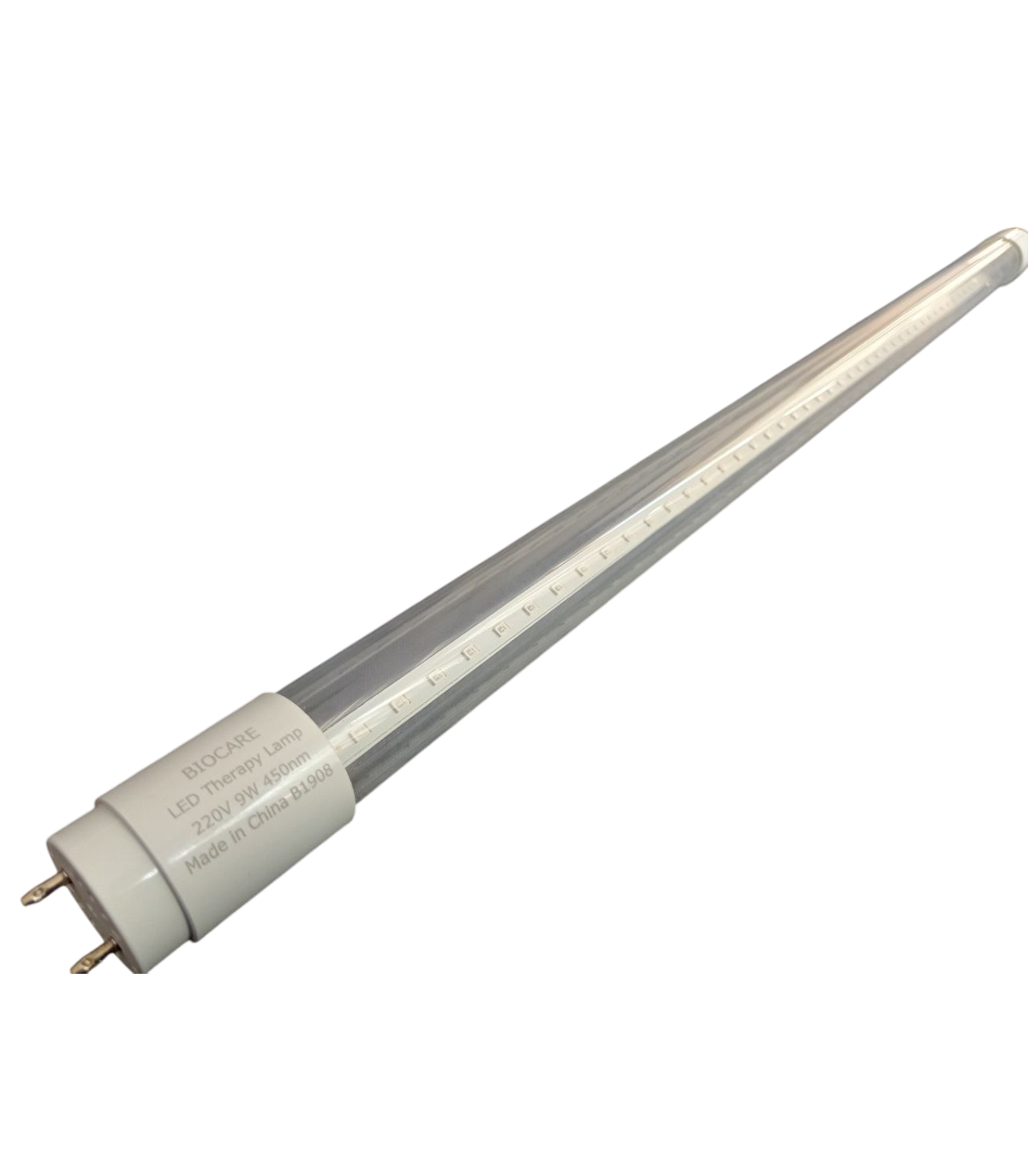 لامپ فتوتراپی LED برند BIOCARE با توان ورودی 9 وات راه اندازی شده و در خانه قابل استفاده است.مزیت لامپ فتوتراپی ال ای دی این است که علاوه بر مصرف برق پایین تا 20000 ساعت نی کارایی دارد. طول موج این لامپ LED 400 تا 500 نانومتر بوده و حداکثر طول موج آن 450 نانومتر است.این لامپ فتوتراپی به شکل مهتابی بوده و در هر طرف آن دو سوکت قرار دارد.لامپ فتوتراپی LED در فروشگاه کالا طب با گارانتی اصالت و سلامت فیزیکی کالا به فروش میرسد.خرید لامپ LED فتوتراپی برای همکاران و مراکز درمانی با تخفیف و قیمت مناسب صورت میگیرد.