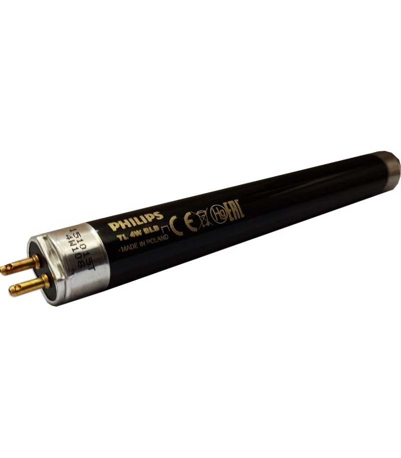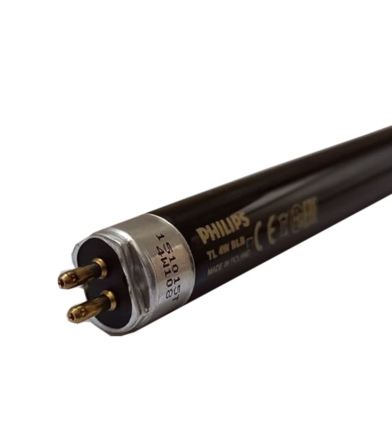 لامپ مهتابی بلک لایت 4 وات فیلیپس با ولتاژ ورودی 29 ولت و شدت جریان ورودی 170 میلی آمپر روشن میشود.طول این لامپ نور سیاه 13.59 سانتیمتر بوده و قطر حباب آن 16 میلیمتر است.عمر مفید استفاده از این لامپ بلک لایت تا 8000 ساعت میباشد.این لامپ UVA پس از اتمام طول عمر، کارایی خود را از دست داده و باید با یک لامپ جدید تعویض شود.پایه این لامپ به شکل G5 و قطر آن به شکل T5 است.طول موج این لامپ 350 تا 400 نانومتر بوده که در حالت ماکزیمم به 370 نانومتر میرسد.